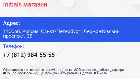 Initials, магазин по адресу 190068, Россия, Санкт-Петербург, Лермонтовский проспект, 35 в дальнейшем Организация, размещена в следующих категориях: