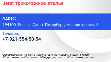 Jerst, трикотажное ателье по адресу 194100, Россия, Санкт-Петербург, Новолитовская, 5 в дальнейшем Организация, размещена в следующих категориях: