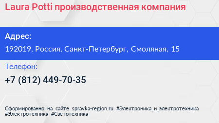 Laura Potti, производственная компания по адресу 192019, Россия, Санкт-Петербург, Смоляная, 15 в дальнейшем Организация, размещена в следующих категориях: