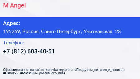 M Angel по адресу 195269, Россия, Санкт-Петербург, Учительская, 23 в дальнейшем Организация, размещена в следующих категориях: