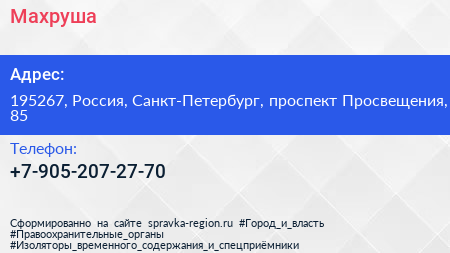 Махруша по адресу 195267, Россия, Санкт-Петербург, проспект Просвещения, 85 в дальнейшем Организация, размещена в следующих категориях: