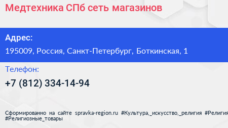 Медтехника СПб, сеть магазинов по адресу 195009, Россия, Санкт-Петербург, Боткинская, 1 в дальнейшем Организация, размещена в следующих категориях: