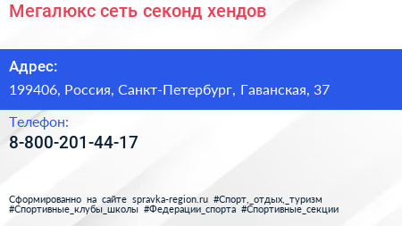 Мегалюкс, сеть секонд-хендов по адресу 199406, Россия, Санкт-Петербург, Гаванская, 37 в дальнейшем Организация, размещена в следующих категориях: