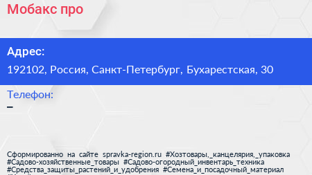 Мобакс про по адресу 192102, Россия, Санкт-Петербург, Бухарестская, 30 в дальнейшем Организация, размещена в следующих категориях:
