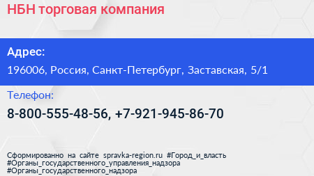 НБН, торговая компания по адресу 196006, Россия, Санкт-Петербург, Заставская, 5/1 в дальнейшем Организация, размещена в следующих категориях: