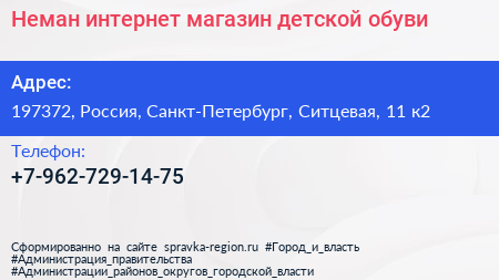 Неман, интернет-магазин детской обуви по адресу 197372, Россия, Санкт-Петербург, Ситцевая, 11 к2 в дальнейшем Организация, размещена в следующих категориях: