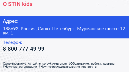O`STIN kids по адресу 188692, Россия, Санкт-Петербург, Мурманское шоссе 12 км, 1 в дальнейшем Организация, размещена в следующих категориях: