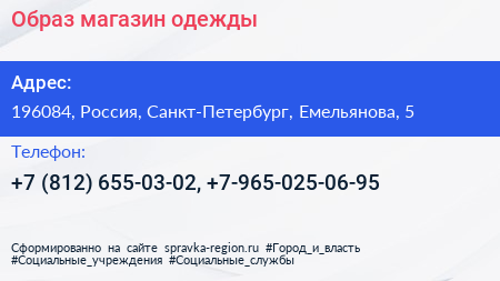 Образ, магазин одежды по адресу 196084, Россия, Санкт-Петербург, Емельянова, 5 в дальнейшем Организация, размещена в следующих категориях: