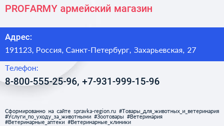 PROFARMY, армейский магазин по адресу 191123, Россия, Санкт-Петербург, Захарьевская, 27 в дальнейшем Организация, размещена в следующих категориях: