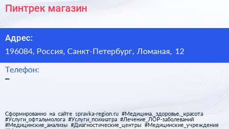 Пинтрек, магазин по адресу 196084, Россия, Санкт-Петербург, Ломаная, 12 в дальнейшем Организация, размещена в следующих категориях: