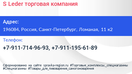 S-Leder, торговая компания по адресу 196084, Россия, Санкт-Петербург, Ломаная, 11 к2 в дальнейшем Организация, размещена в следующих категориях: