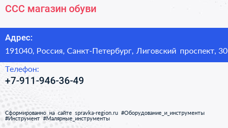 ССС, магазин обуви по адресу 191040, Россия, Санкт-Петербург, Лиговский проспект, 30 в дальнейшем Организация, размещена в следующих категориях: