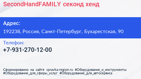SecondHandFAMILY, секонд-хенд по адресу 192238, Россия, Санкт-Петербург, Бухарестская, 90 в дальнейшем Организация, размещена в следующих категориях: