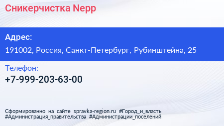 Сникерчистка Nepp по адресу 191002, Россия, Санкт-Петербург, Рубинштейна, 25 в дальнейшем Организация, размещена в следующих категориях: