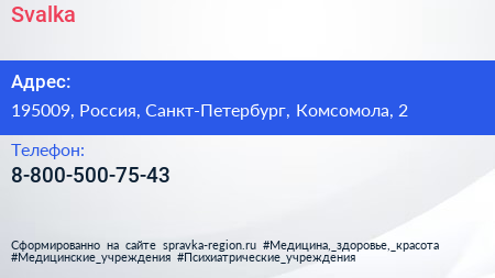 Svalka по адресу 195009, Россия, Санкт-Петербург, Комсомола, 2 в дальнейшем Организация, размещена в следующих категориях: