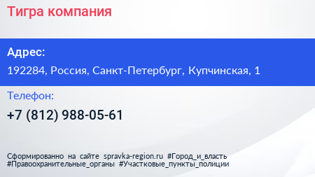 Тигра, компания по адресу 192284, Россия, Санкт-Петербург, Купчинская, 1 в дальнейшем Организация, размещена в следующих категориях: