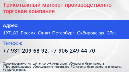 Трикотажный манжет, производственно-торговая компания по адресу 197183, Россия, Санкт-Петербург, Сабировская, 37ж в дальнейшем Организация, размещена в следующих категориях: