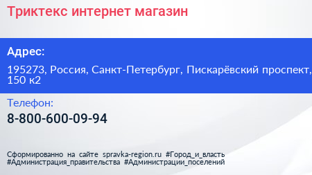 Триктекс, интернет-магазин по адресу 195273, Россия, Санкт-Петербург, Пискарёвский проспект, 150 к2 в дальнейшем Организация, размещена в следующих категориях: