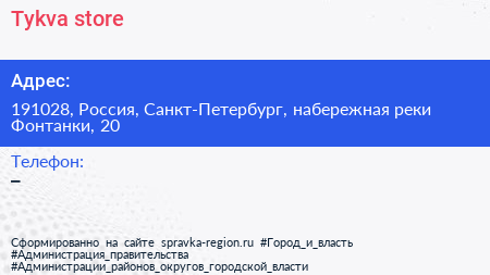 Tykva store по адресу 191028, Россия, Санкт-Петербург, набережная реки Фонтанки, 20 в дальнейшем Организация, размещена в следующих категориях: