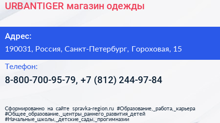 URBANTIGER, магазин одежды по адресу 190031, Россия, Санкт-Петербург, Гороховая, 15 в дальнейшем Организация, размещена в следующих категориях: