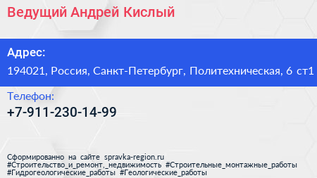 Ведущий Андрей Кислый по адресу 194021, Россия, Санкт-Петербург, Политехническая, 6 ст1 в дальнейшем Организация, размещена в следующих категориях: