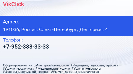 VikClick по адресу 191036, Россия, Санкт-Петербург, Дегтярная, 4 в дальнейшем Организация, размещена в следующих категориях: