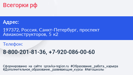 Всегорки.рф по адресу 197372, Россия, Санкт-Петербург, проспект Авиаконструкторов, 5 к2 в дальнейшем Организация, размещена в следующих категориях: