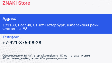 ZNAKI Store по адресу 191180, Россия, Санкт-Петербург, набережная реки Фонтанки, 96 в дальнейшем Организация, размещена в следующих категориях: