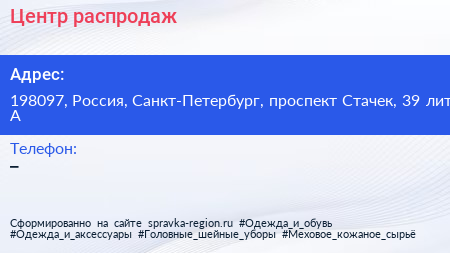 Центр распродаж по адресу 198097, Россия, Санкт-Петербург, проспект Стачек, 39 лит А в дальнейшем Организация, размещена в следующих категориях: