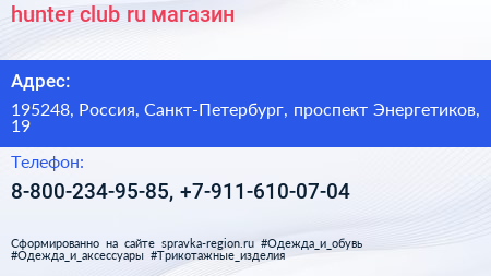 hunter-club.ru, магазин по адресу 195248, Россия, Санкт-Петербург, проспект Энергетиков, 19 в дальнейшем Организация, размещена в следующих категориях: