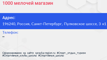 1000 мелочей, магазин по адресу 196240, Россия, Санкт-Петербург, Пулковское шоссе, 3 к1 в дальнейшем Организация, размещена в следующих категориях: