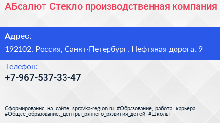АБсалют Стекло, производственная компания по адресу 192102, Россия, Санкт-Петербург, Нефтяная дорога, 9 в дальнейшем Организация, размещена в следующих категориях: