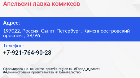 Апельсин, лавка комиксов по адресу 197022, Россия, Санкт-Петербург, Каменноостровский проспект, 38/96 в дальнейшем Организация, размещена в следующих категориях: