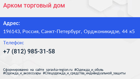 Арком, торговый дом по адресу 196143, Россия, Санкт-Петербург, Орджоникидзе, 44 к5 в дальнейшем Организация, размещена в следующих категориях: