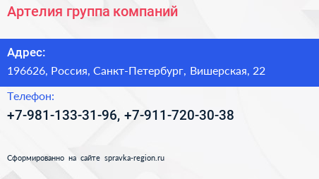 Артелия, группа компаний по адресу 196626, Россия, Санкт-Петербург, Вишерская, 22 в дальнейшем Организация, размещена в следующих категориях: