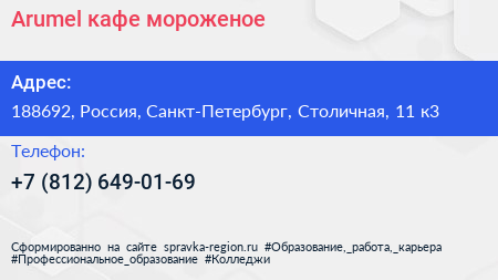 Arumel, кафе-мороженое по адресу 188692, Россия, Санкт-Петербург, Столичная, 11 к3 в дальнейшем Организация, размещена в следующих категориях: