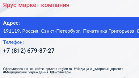 Ярус маркет, компания по адресу 191119, Россия, Санкт-Петербург, Печатника Григорьева, 8 в дальнейшем Организация, размещена в следующих категориях:
