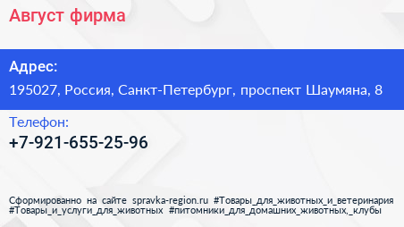 Август, фирма по адресу 195027, Россия, Санкт-Петербург, проспект Шаумяна, 8 в дальнейшем Организация, размещена в следующих категориях: