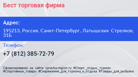 Бест, торговая фирма по адресу 195213, Россия, Санкт-Петербург, Латышских Стрелков, 31Б в дальнейшем Организация, размещена в следующих категориях: