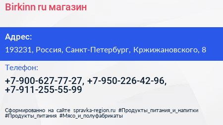Birkinn.ru, магазин по адресу 193231, Россия, Санкт-Петербург, Кржижановского, 8 в дальнейшем Организация, размещена в следующих категориях: