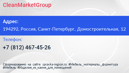 CleanMarketGroup по адресу 194292, Россия, Санкт-Петербург, Домостроительная, 12 в дальнейшем Организация, размещена в следующих категориях: