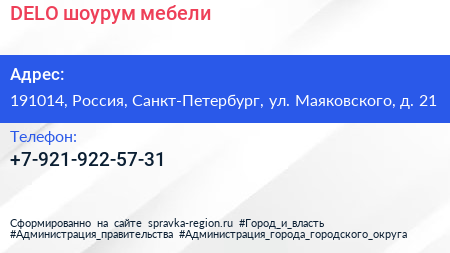 DELO шоурум мебели по адресу 191014, Россия, Санкт-Петербург, ул. Маяковского, д. 21 в дальнейшем Организация, размещена в следующих категориях:
