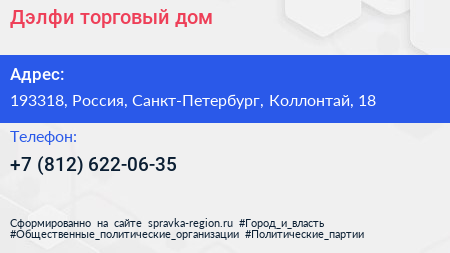 Дэлфи, торговый дом по адресу 193318, Россия, Санкт-Петербург, Коллонтай, 18 в дальнейшем Организация, размещена в следующих категориях:
