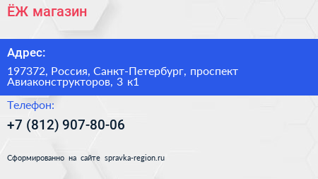 ЁЖ, магазин по адресу 197372, Россия, Санкт-Петербург, проспект Авиаконструкторов, 3 к1 в дальнейшем Организация, размещена в следующих категориях: