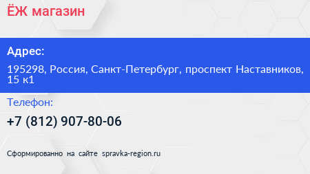 ЁЖ, магазин по адресу 195298, Россия, Санкт-Петербург, проспект Наставников, 15 к1 в дальнейшем Организация, размещена в следующих категориях: