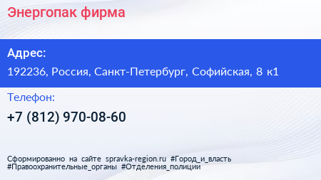Энергопак, фирма по адресу 192236, Россия, Санкт-Петербург, Софийская, 8 к1 в дальнейшем Организация, размещена в следующих категориях:
