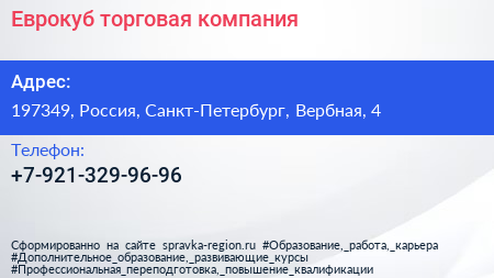 Еврокуб, торговая компания по адресу 197349, Россия, Санкт-Петербург, Вербная, 4 в дальнейшем Организация, размещена в следующих категориях: