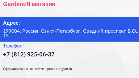 GardenиЯ, магазин по адресу 199004, Россия, Санкт-Петербург, Средний проспект В.О., 13 в дальнейшем Организация, размещена в следующих категориях: