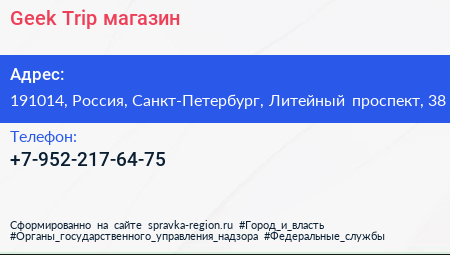 Geek Trip, магазин по адресу 191014, Россия, Санкт-Петербург, Литейный проспект, 38 в дальнейшем Организация, размещена в следующих категориях: