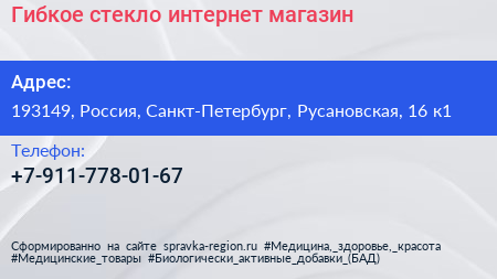 Гибкое стекло, интернет-магазин по адресу 193149, Россия, Санкт-Петербург, Русановская, 16 к1 в дальнейшем Организация, размещена в следующих категориях: